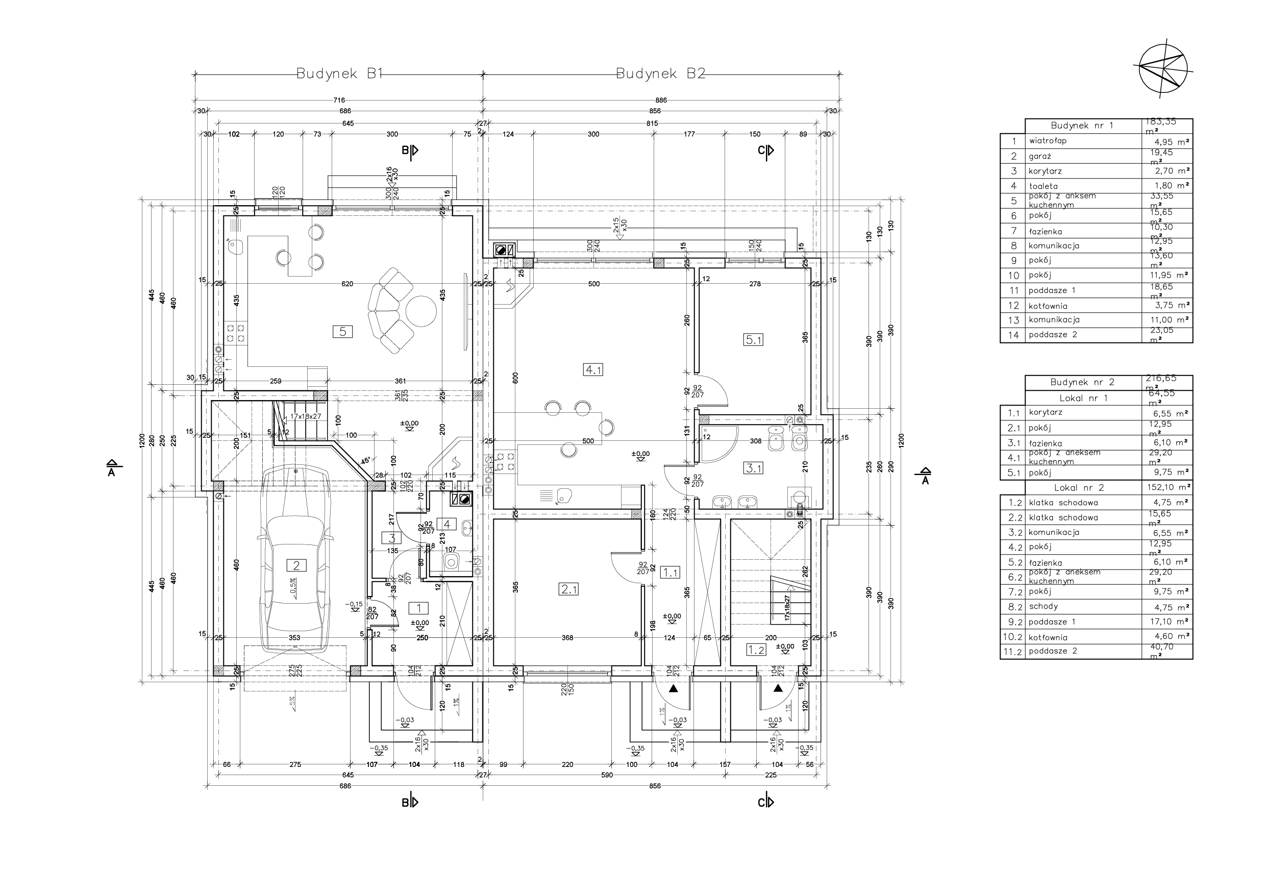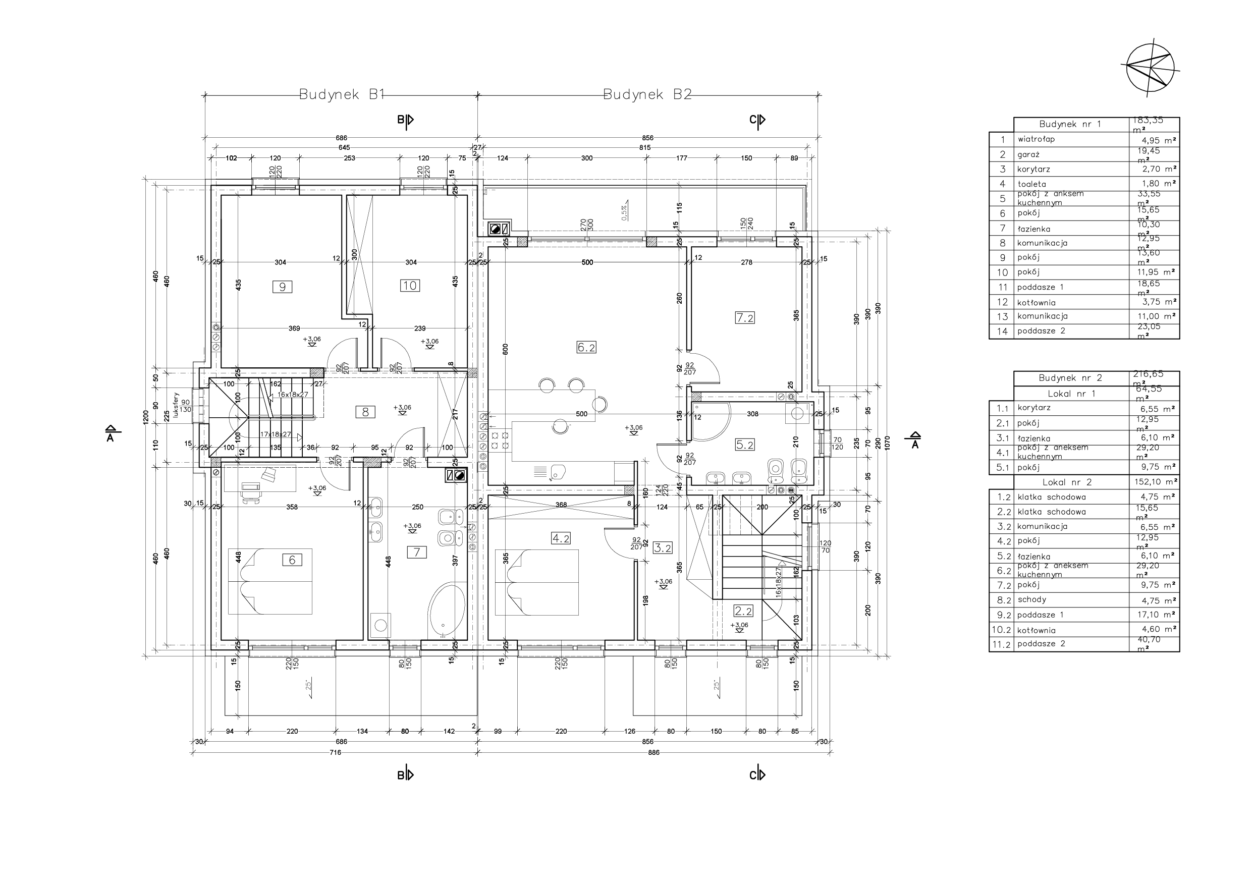 Segment pierwszy to przestronny, nowoczesny budynek piętrowy z poddaszem użytkowym i garażem, o łącznej powierzchni użytkowej 183,35 m². Jest to idealne rozwiązanie dla rodzin ceniących przestrzeń i możliwość elastycznej aranżacji wnętrza.